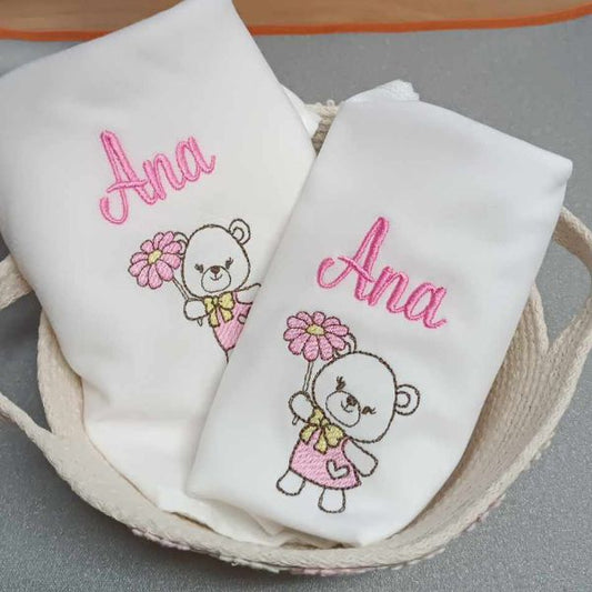 CONJUNTO SACAS E PORTA CHUPETA GIRAFAS