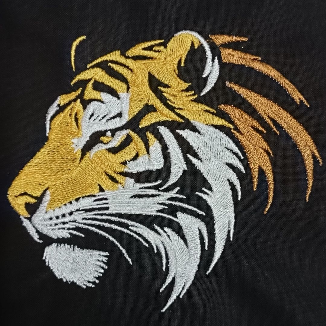 Este bordado capta a essência majestosa do tigre, com traços definidos que transmitem poder, presença e serenidade. Um bordado marcante, ideal para quem quer adicionar um toque ousado e sofisticado aos seus artigos texteis.
