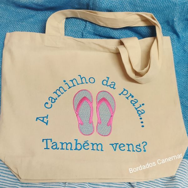SACO COM BORDADO "A CAMINHO DA PRAIA"