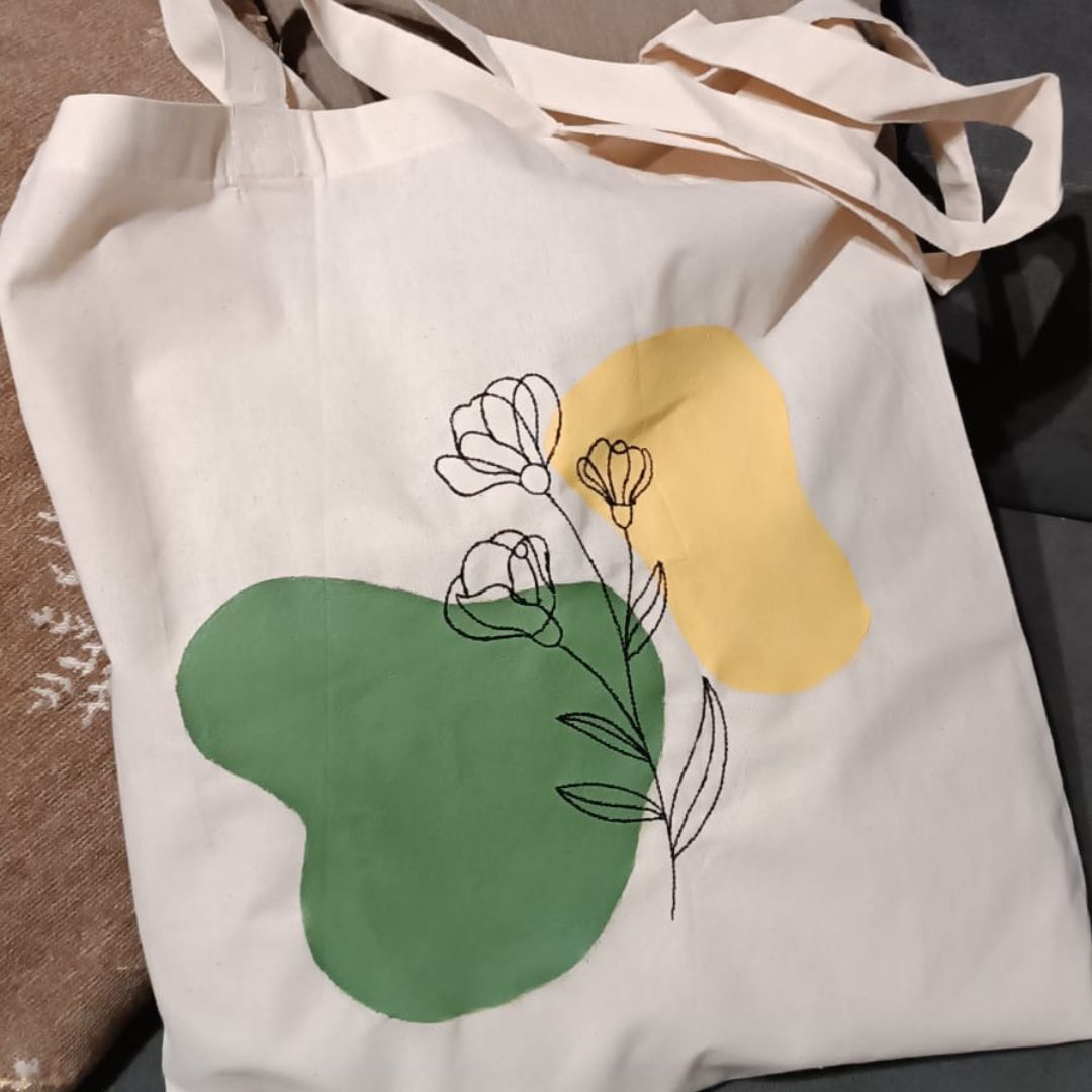 TOTE BAG COM BORDADO "FLOR MINIMALISTA"